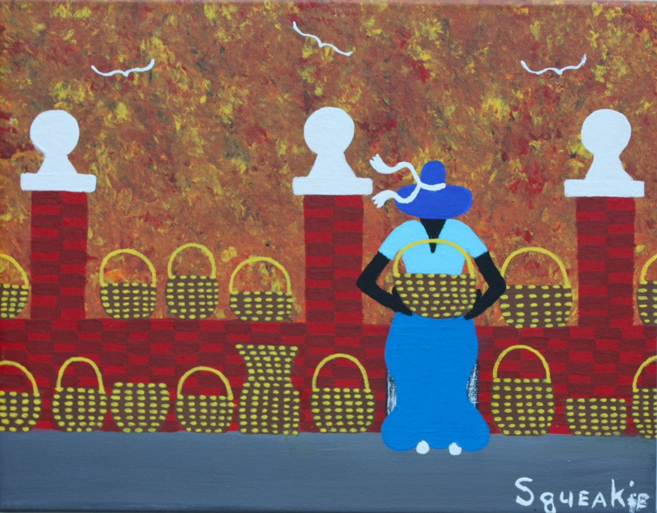 Squeakie is a self-taught artist from the rural Lowcountry whose nostalgic paintings portray a simpler way of life in Coastal South Carolina. He draws his inspiration from memories of childhood where he often worked in tobacco and cotton fields. He talks about this time in his life as "the work was hard, but life was slower, more simple- not so many distractions and bills to pay." He went on to work in factories and grocery stores until he became a house painter for nearly 25 years. Like many self-taught artists, Squeakie did not start creatively painting until later in his life. He was encouraged to do so by his Uncle Henry "Squirrel" Stone, who was a folk artist himself. One of Squirrel's clients asked for a commissioned painting of a church. Squirrel passed this commission on to Squeakie. Since that first painting, Squeakie has a resolute sense of purpose in his work. In 2007 he became a full-time artist, and now his "naive, down-home pictures" have been bought by collectors across the United States, and abroad. He says he paints more now than when he painted houses as his paintings tend to get snapped up quickly.