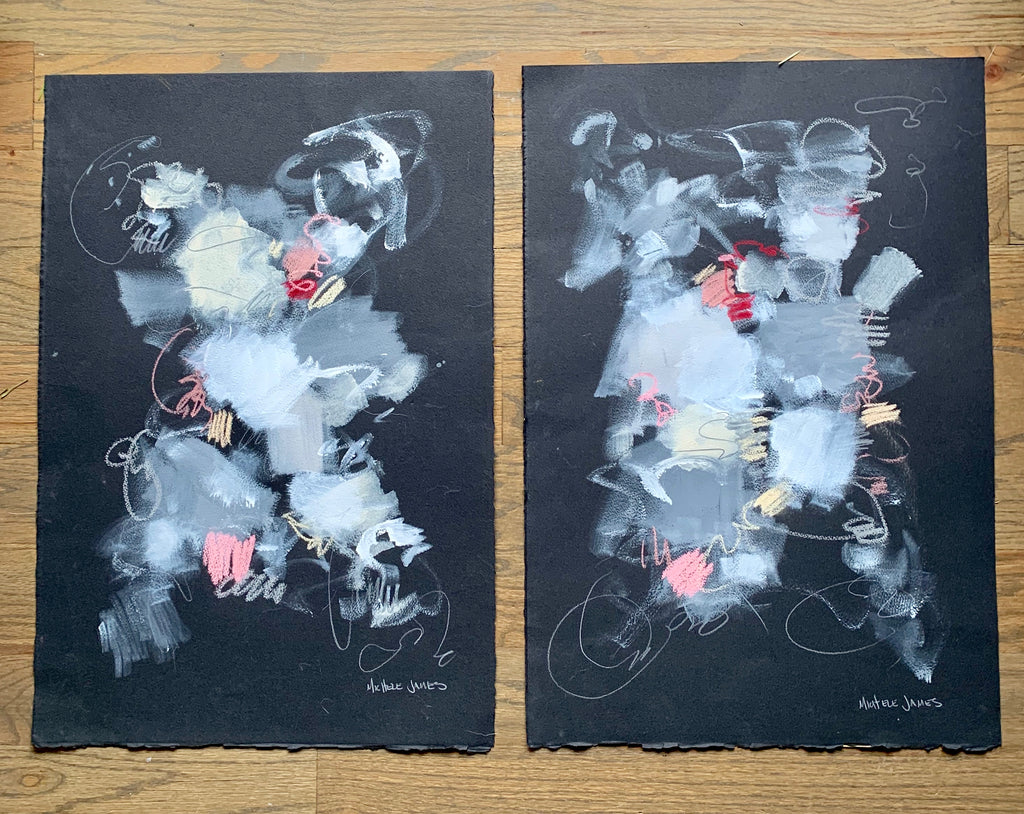 Michele James is an abstract painter known for her large works on canvas. She is inspired by color and movement and uses strong brushstroke and varied marks on neutral canvases with pops of bold colors. She paints with acrylics , and uses chalk, oil pastels and pencil to vary the texture and medium of her works. She is influenced by the colors in nature, the lightness and space of the sky, and the texture and depth of landscapes. “I love to make people happy and for a client to add my painting to their home is wonderful compliment” Michele received a BFA in fine art and art history at Hunter College in New York, NY with a concentration in studio painting. Michele paints out of her home studio in Atlanta where she lives with her husband and three kids.