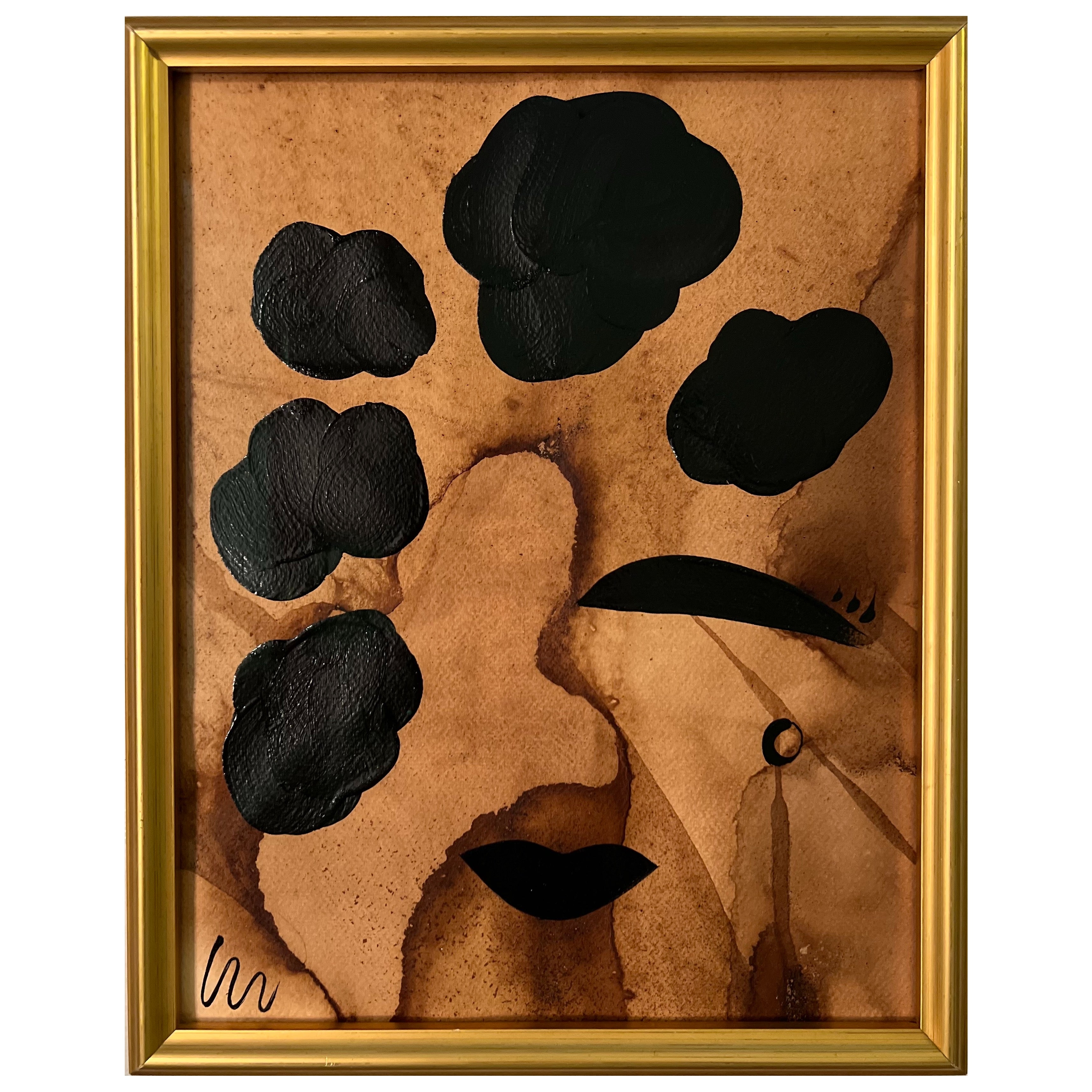 acrylic on tea stained cold press paper, in traditional gold frame with anti-reflective glass