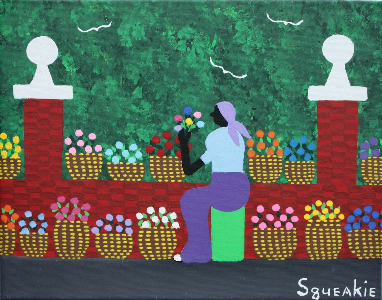 Squeakie is a self-taught artist from the rural Lowcountry whose nostalgic paintings portray a simpler way of life in Coastal South Carolina. He draws his inspiration from memories of childhood where he often worked in tobacco and cotton fields. He talks about this time in his life as "the work was hard, but life was slower, more simple- not so many distractions and bills to pay." He went on to work in factories and grocery stores until he became a house painter for nearly 25 years. Like many self-taught artists, Squeakie did not start creatively painting until later in his life. He was encouraged to do so by his Uncle Henry "Squirrel" Stone, who was a folk artist himself. One of Squirrel's clients asked for a commissioned painting of a church. Squirrel passed this commission on to Squeakie. Since that first painting, Squeakie has a resolute sense of purpose in his work. In 2007 he became a full-time artist, and now his "naive, down-home pictures" have been bought by collectors across the United States, and abroad. He says he paints more now than when he painted houses as his paintings tend to get snapped up quickly.