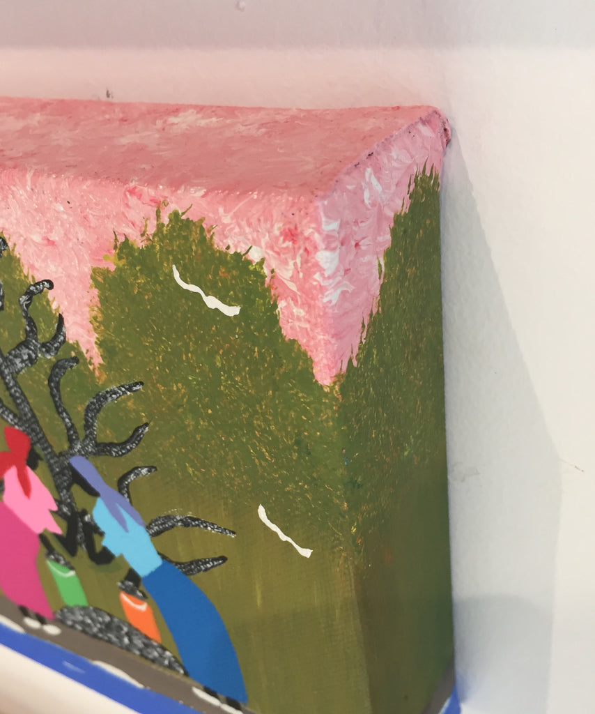 Squeakie is a self-taught artist from the rural Lowcountry whose nostalgic paintings portray a simpler way of life in Coastal South Carolina. He draws his inspiration from memories of childhood where he often worked in tobacco and cotton fields. He talks about this time in his life as "the work was hard, but life was slower, more simple- not so many distractions and bills to pay." He went on to work in factories and grocery stores until he became a house painter for nearly 25 years. Like many self-taught artists, Squeakie did not start creatively painting until later in his life. He was encouraged to do so by his Uncle Henry "Squirrel" Stone, who was a folk artist himself. One of Squirrel's clients asked for a commissioned painting of a church. Squirrel passed this commission on to Squeakie. Since that first painting, Squeakie has a resolute sense of purpose in his work. In 2007 he became a full-time artist, and now his "naive, down-home pictures" have been bought by collectors across the United States, and abroad. He says he paints more now than when he painted houses as his paintings tend to get snapped up quickly.