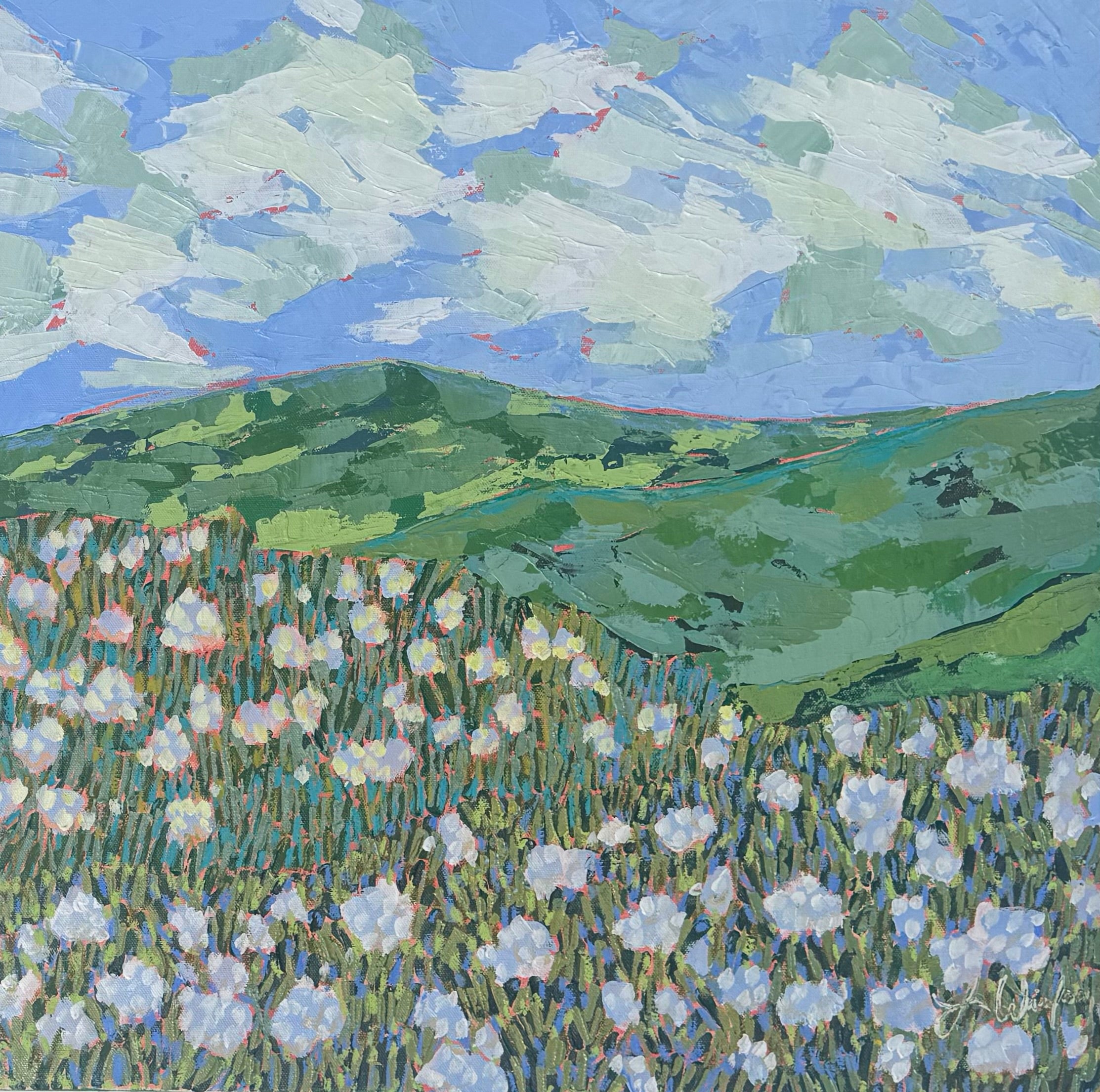 Lindsey’s paintings are an escape and journey - a time to relish the process of creativity: the brush strokes, the layers, the juxtaposition of colors. She works primarily with acrylic paints for their intensity of color and the ability to layer and create textures with various acrylic mediums and gels. A native of Lynchburg, Virginia, Lindsey’s landscapes generally focus on special places that she has known all her life, including fields at the foot of the Blue Ridge Mountains and the pristine beauty of the Cowpasture River. Working from onsite sketches and photographs, she mixes observations with her own personal memories and feelings of how she perceives a place. In addition to being an artist, Lindsey is a full-time art educator, wife, and mother of two young children.