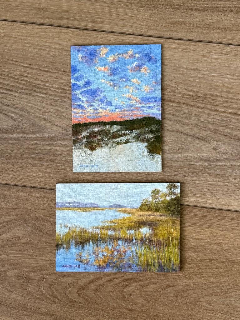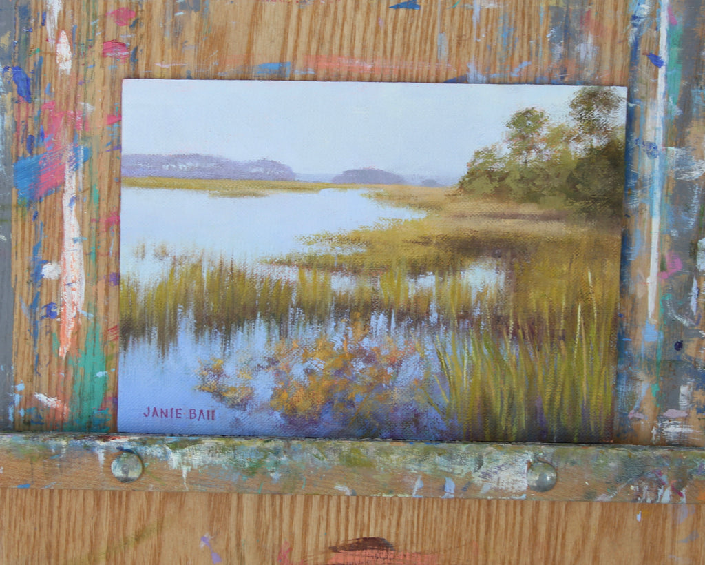 Janie Ball a Charleston native. The Rhode Island School of Design (RISD) graduate has had a successful marketing career winning ADDY and CASE Awards prior to returning to fine art full time. Her paintings are composed of bold thoughtful shapes of color which when visually combined by the viewer "paint" the image, be it en plein air, contemporary realism, or abstract expressionism. The Charleston Artist Collective member’s paintings are in private and corporate collections including the Belmond Charleston Place and MUSC Children’s Hospital. Janie’s work has been exhibited in solo and group shows, as far away as Portland, Maine. In Spring of 2017, her painting “Out of the Blue” was selected as the Community Choice Winner for ArtPop Street Gallery of Charleston, to be featured on an Adams Outdoor Advertising 14-foot x 48-foot billboard for a year. http://janieballpaints.com/