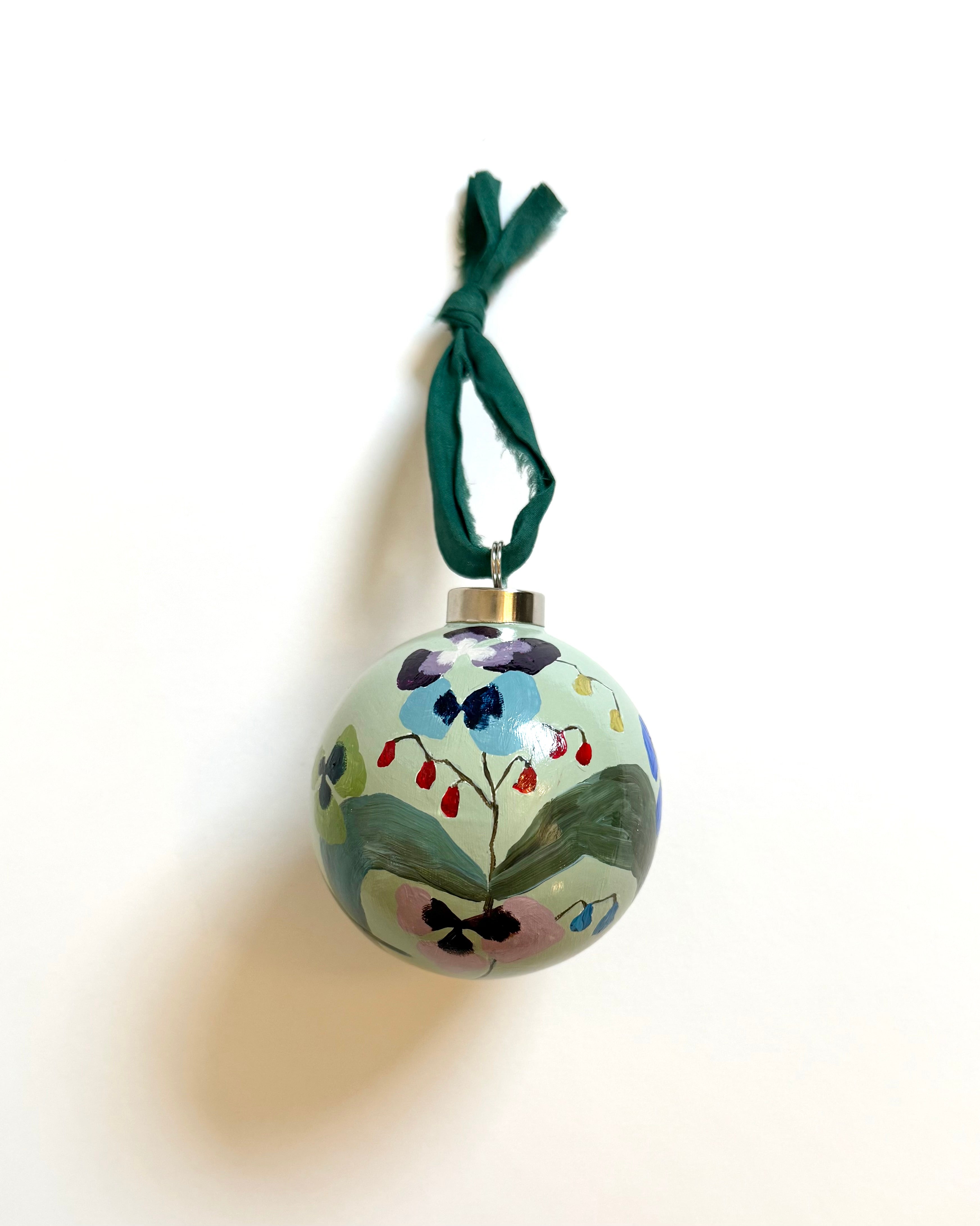 hand painted ceramic ornament with acrylic paint and glossy varnish