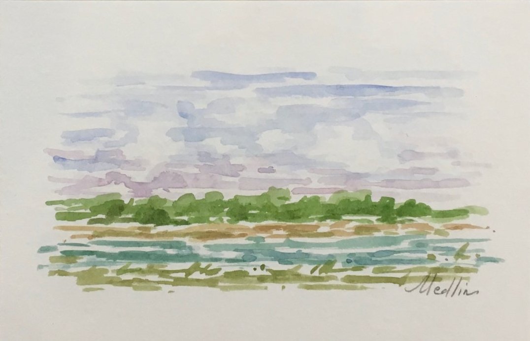 watercolor on watercolor paper, framed in lucite frame