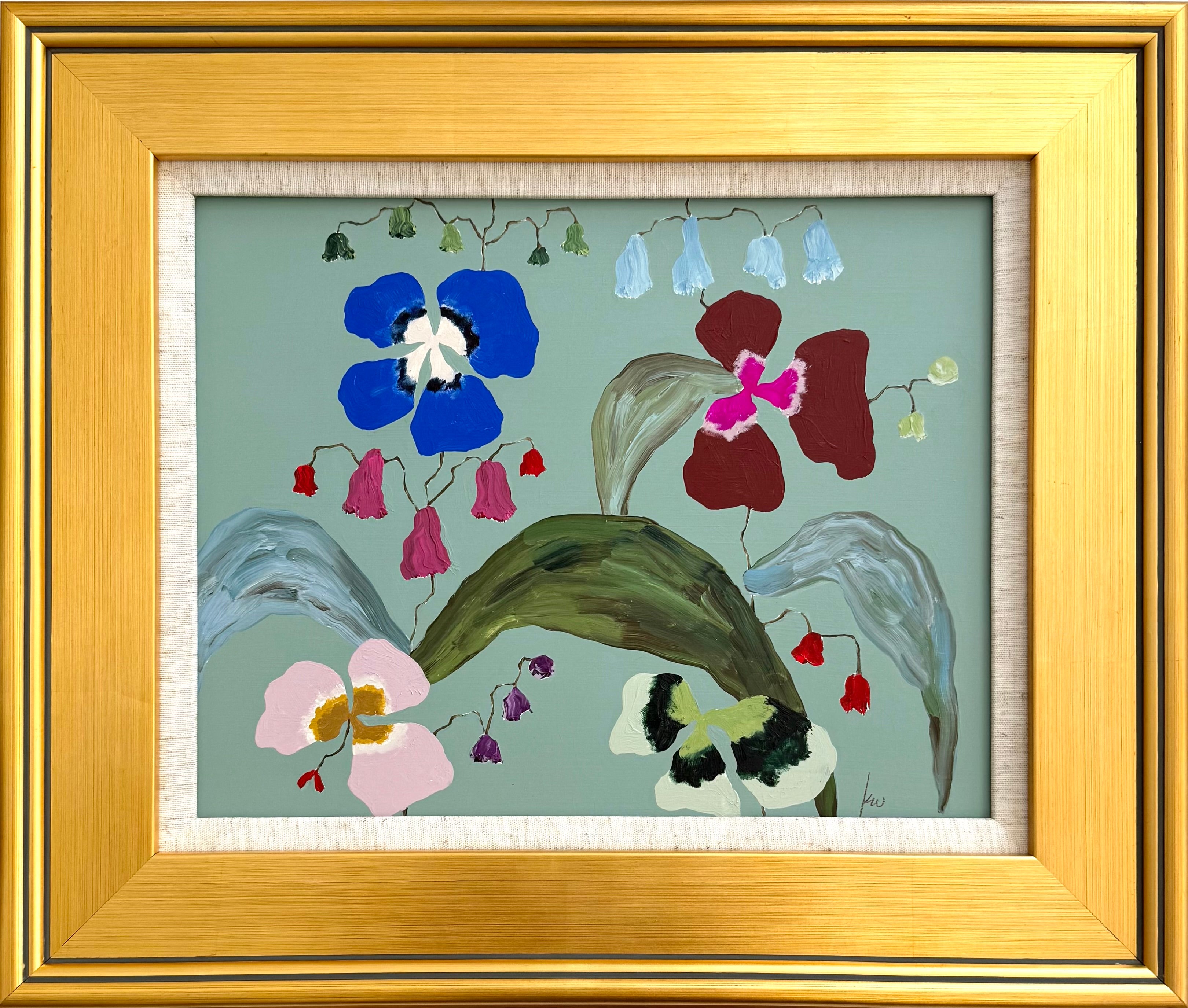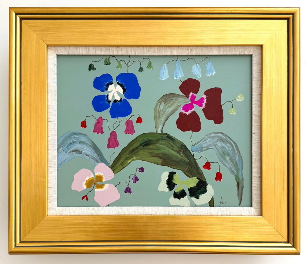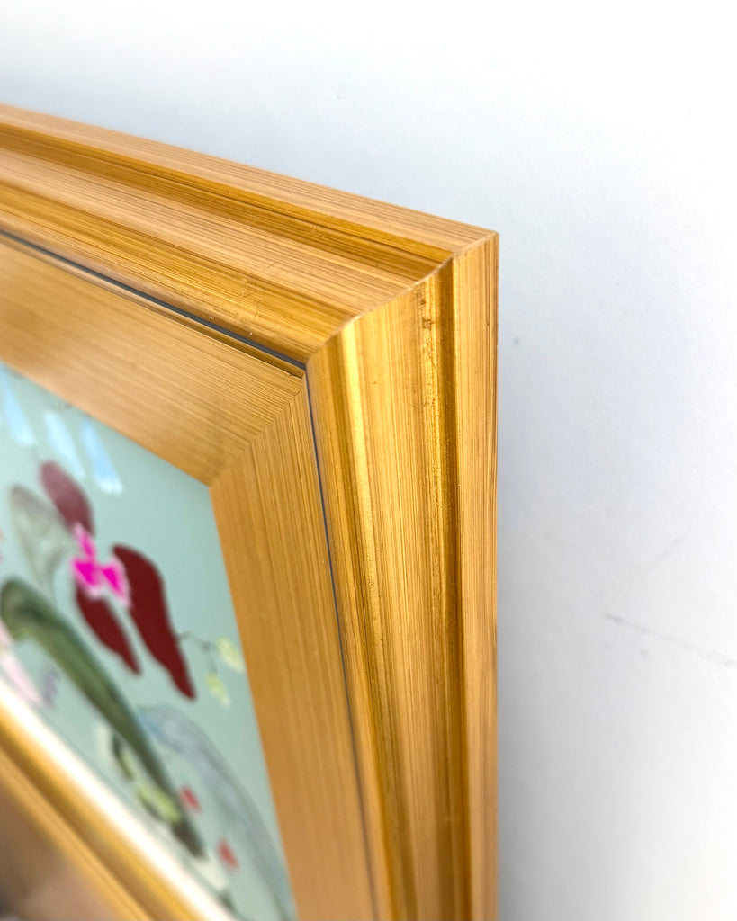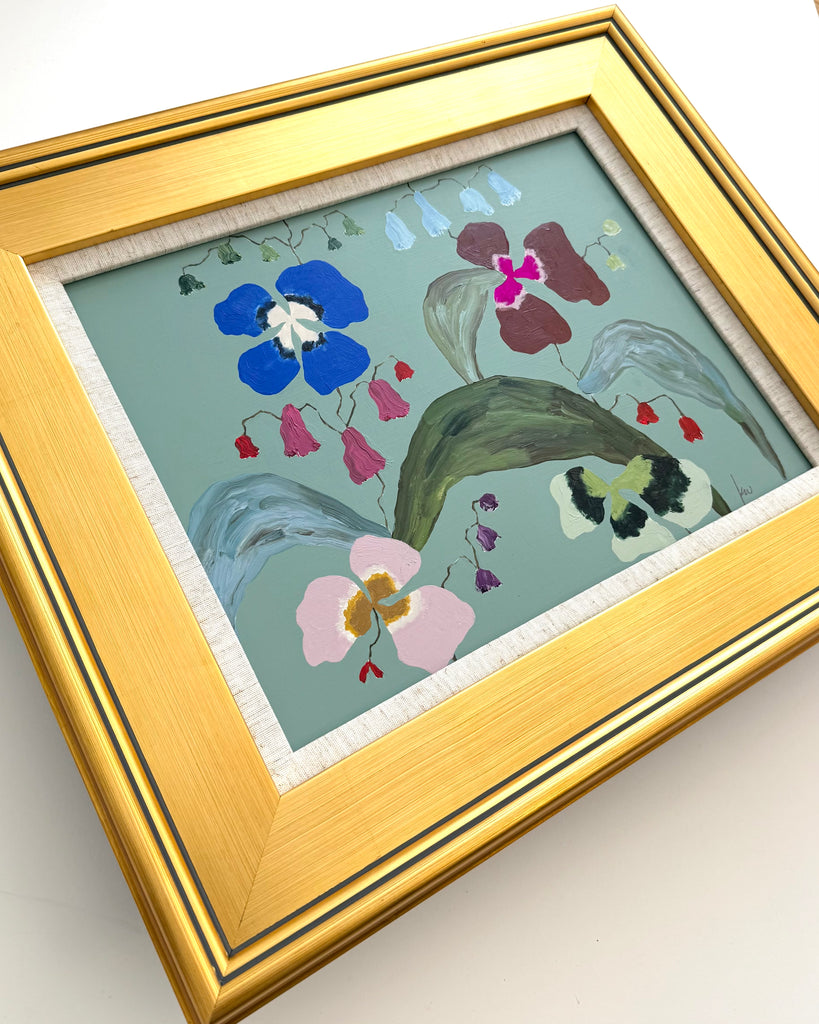 acrylic on wood panel, in gold frame with linen mat