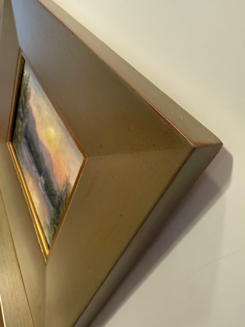 oil on linen panel, in grey and gold frame