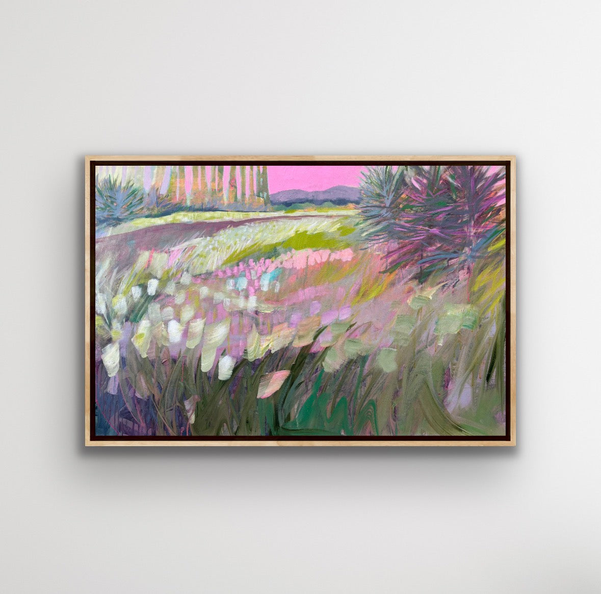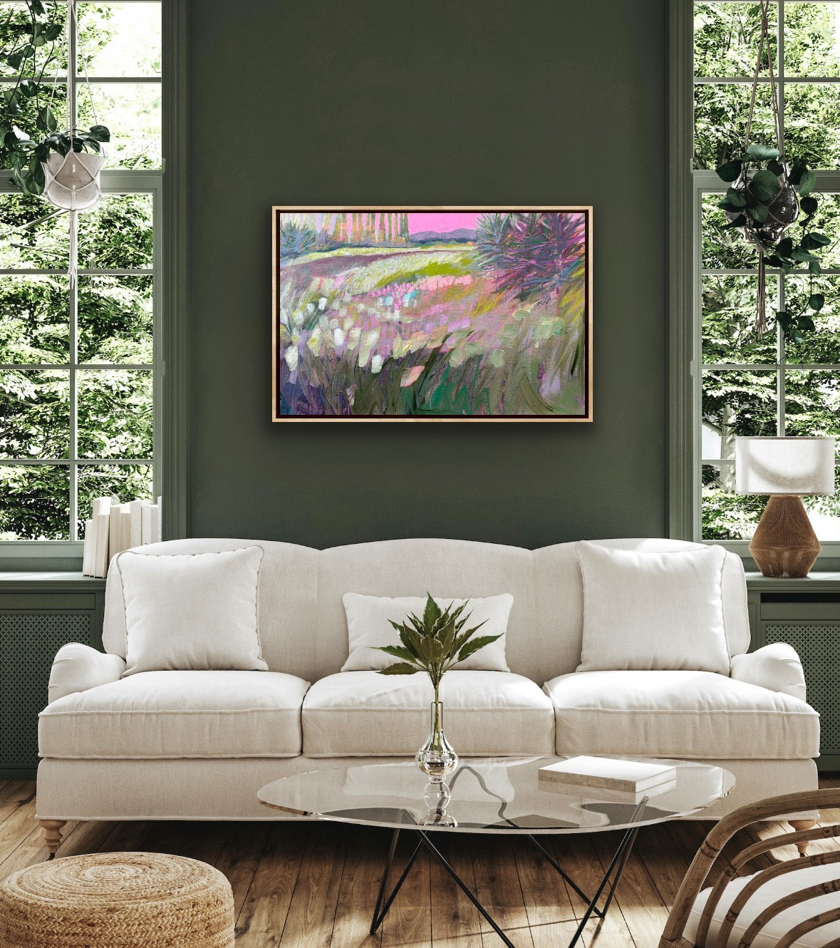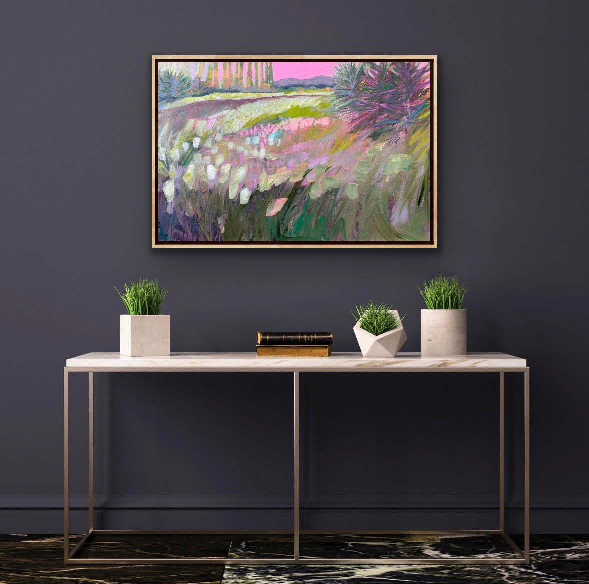 acrylic on gallery wrapped canvas, in gold leaf frame