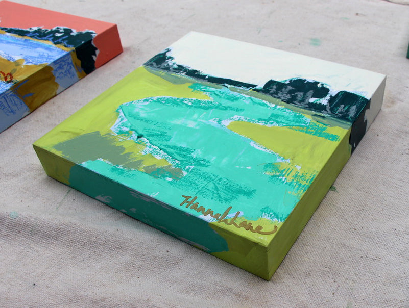 Hannah Lane is a contemporary mixed media artist celebrated for her bold use of color and dynamic, collage-like layering. A Louisiana native and graduate of the Savannah College of Art & Design, Hannah draws deep inspiration from the vibrant landscapes, diverse cultures, and heartfelt sense of family and community found in her southern roots. Her work blends pigmented Japanese papers, expressive line work, and rich washes of acrylic paint to create textured, energetic paintings. Each collection reflects her love for nature, storytelling, and community—an invitation to explore the beauty of her inner imagination. Hannah is represented by some of the top galleries in the Southeast, and her paintings are collected privately and in corporate spaces across the country. She also loves working one-on-one with collectors to create meaningful, custom pieces. After living and painting in Italy and New Orleans, Hannah now calls Nashville home, where she is part of a thriving art community. When she’s not painting in her home studio, you’ll find Hannah hiking with her boys, reading, or cooking up something seasonal and delicious! The crowd series is one of my most iconic collections, inspired by my big, beautiful Louisiana family and the joyful spirit of southern gatherings. I grew up surrounded by cousins, friends, and neighbors—many from families as large and lively as my own—where faith and family were at the heart of everything. Over the past 12 years, this series has evolved with new patterns, papers, and symbols that reflect the changing seasons of life. Each crowd painting is a kind of meditation, a reflection on the deep truth that we’re all connected. Rich with personal symbols and intuitive mark-making, these pieces push the boundaries of mixed media and invite you to see something familiar in a new way. Whether you're drawn to the vibrant energy, the quiet details, or the sense of belonging they evoke, each crowd carries its own unique aura—waiting for the right person to bring it home.