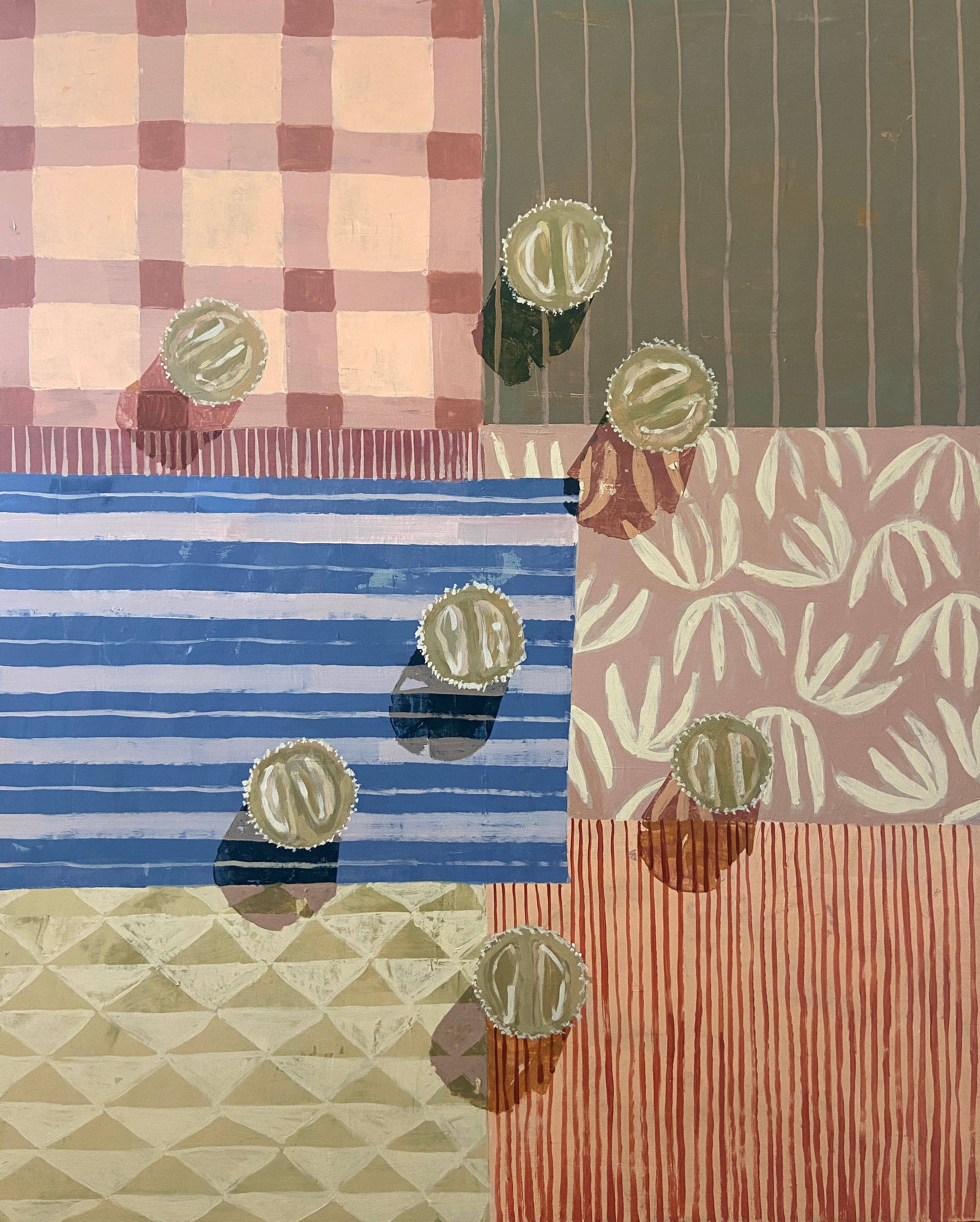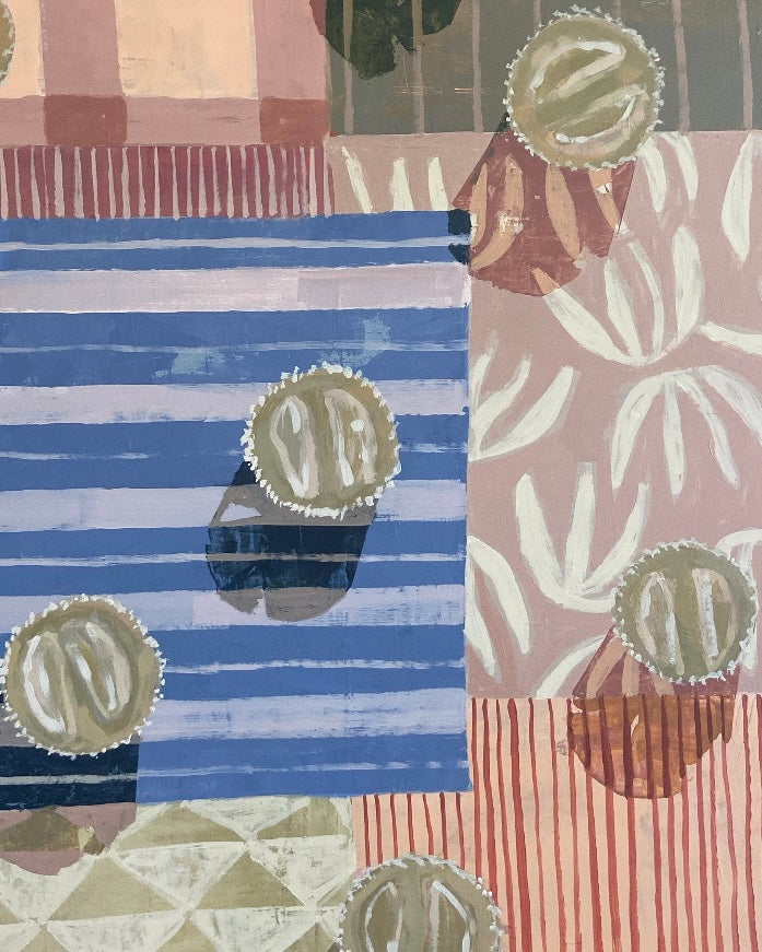 Kate graduated from Clemson University in the spring of 2019 where she got a BFA in Visual Arts. She grew up in Charleston and moved back here after college, due to the flourishing art scene. She knew from an early age that she wanted to pursue a career in art. She is inspired by the colors and textures found around the city. Kate works primarily with acrylic and gouache paint on wood panels. Her work tends to be focused on color, pattern, and the balance between abstraction and realism.