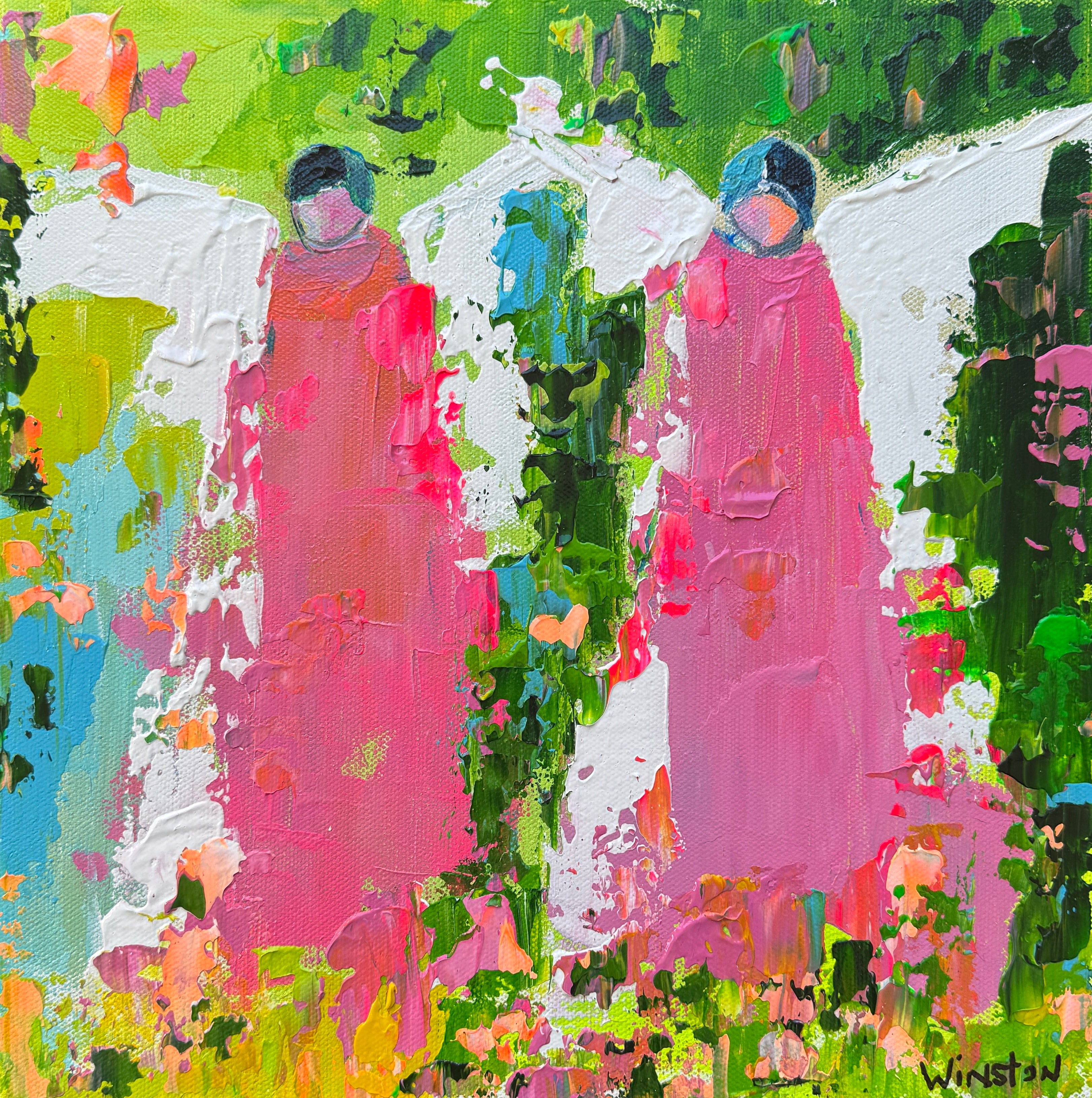 Winston Wiant is originally from Amelia Island, Florida, and full of southern charm. She brings her whimsical and witty delight to each and every painting. Having painted since childhood, she received a Bachelor of Arts degree in Studio Art at Brenau University and has been pursuing her love of art ever since. Her paintings are full of texture, using the palette knife and free brushstrokes to layer the paint, creating one energetic piece after another. She lives in Athens, GA, with her husband and two daughters and paints in her home studio. “Art to me is a form of self-expression. The way I feel that day reflects in my work. My love of bold color and texture is both distinctive and captivating.”