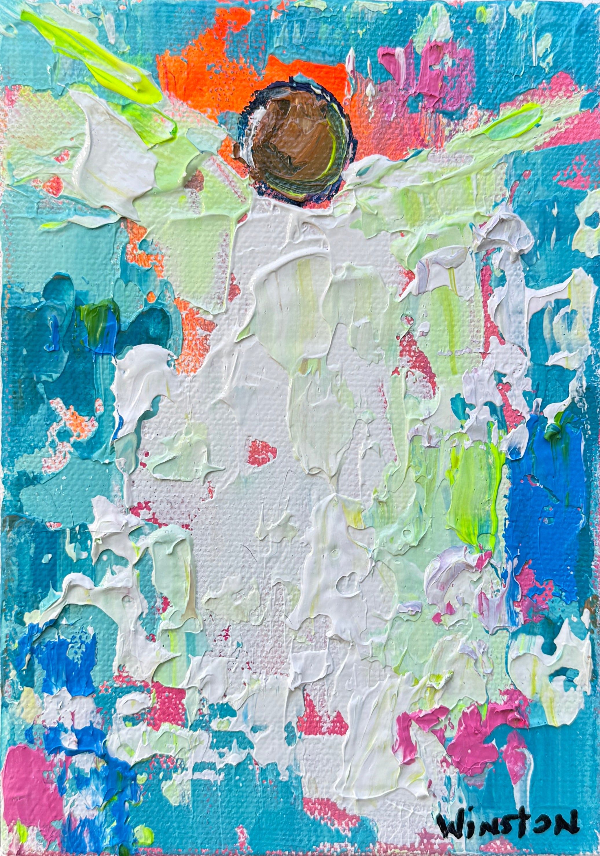 Winston Wiant is originally from Amelia Island, Florida, and full of southern charm. She brings her whimsical and witty delight to each and every painting. Having painted since childhood, she received a Bachelor of Arts degree in Studio Art at Brenau University and has been pursuing her love of art ever since. Her paintings are full of texture, using the palette knife and free brushstrokes to layer the paint, creating one energetic piece after another. She lives in Athens, GA, with her husband and two daughters and paints in her home studio. “Art to me is a form of self-expression. The way I feel that day reflects in my work. My love of bold color and texture is both distinctive and captivating.”