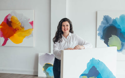 Lauren Batiste Adams is an abstract artist who creates bold, vibrant paintings inspired by the natural world. She is interested in the materiality of paint and the balance of the intentional and incidental in her practice. Lauren is a graduate of Fairmont State University and West Virginia University, where she holds an Interdisciplinary BA in Studio Art/French and a BFA in Visual Art. While at Fairmont State, Lauren studied with acclaimed landscape painter Lynn Boggess. Her work has been featured with Architectural Digest, Crate & Barrel, West Elm, Elements of Style, One Kings Lane, and Serena & Lily. Her paintings can be found in the collections of Kaiser Permanente, Nordstrom (Houston), Galleria Park Hotel (San Francisco), Emory Musculoskeletal Institute, and the West Virginia State Museum. Lauren lives in West Virginia with her artist husband, Derek Overfield, and their two cats.