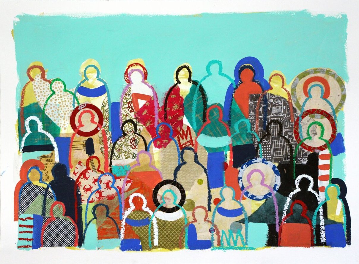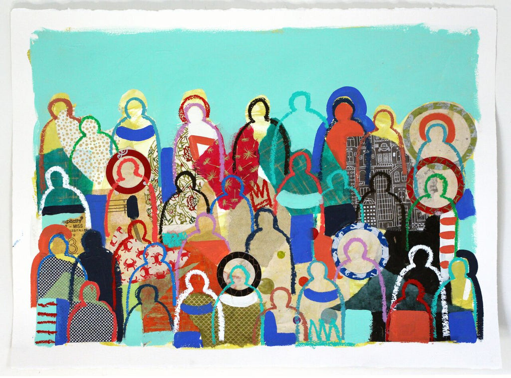 Hannah Lane is a contemporary mixed media artist celebrated for her bold use of color and dynamic, collage-like layering. A Louisiana native and graduate of the Savannah College of Art & Design, Hannah draws deep inspiration from the vibrant landscapes, diverse cultures, and heartfelt sense of family and community found in her southern roots. Her work blends pigmented Japanese papers, expressive line work, and rich washes of acrylic paint to create textured, energetic paintings. Each collection reflects her love for nature, storytelling, and community—an invitation to explore the beauty of her inner imagination. Hannah is represented by some of the top galleries in the Southeast, and her paintings are collected privately and in corporate spaces across the country. She also loves working one-on-one with collectors to create meaningful, custom pieces. After living and painting in Italy and New Orleans, Hannah now calls Nashville home, where she is part of a thriving art community. When she’s not painting in her home studio, you’ll find Hannah hiking with her boys, reading, or cooking up something seasonal and delicious! The crowd series is one of my most iconic collections, inspired by my big, beautiful Louisiana family and the joyful spirit of southern gatherings. I grew up surrounded by cousins, friends, and neighbors—many from families as large and lively as my own—where faith and family were at the heart of everything. Over the past 12 years, this series has evolved with new patterns, papers, and symbols that reflect the changing seasons of life. Each crowd painting is a kind of meditation, a reflection on the deep truth that we’re all connected. Rich with personal symbols and intuitive mark-making, these pieces push the boundaries of mixed media and invite you to see something familiar in a new way. Whether you're drawn to the vibrant energy, the quiet details, or the sense of belonging they evoke, each crowd carries its own unique aura—waiting for the right person to bring it home.