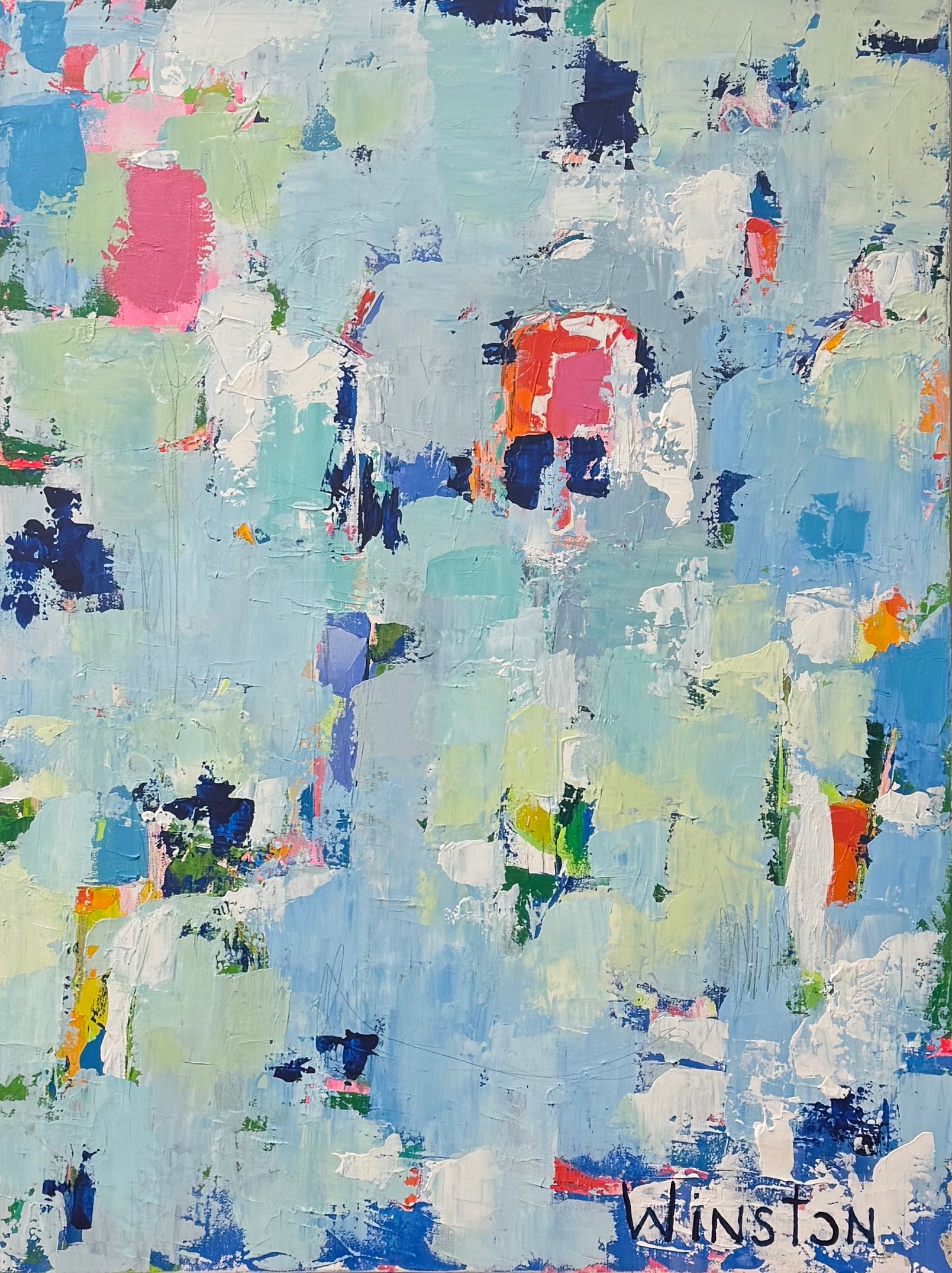 Winston Wiant is originally from Amelia Island, Florida, and full of southern charm. She brings her whimsical and witty delight to each and every painting. Having painted since childhood, she received a Bachelor of Arts degree in Studio Art at Brenau University and has been pursuing her love of art ever since. Her paintings are full of texture, using the palette knife and free brushstrokes to layer the paint, creating one energetic piece after another. She lives in Athens, GA, with her husband and two daughters and paints in her home studio. “Art to me is a form of self-expression. The way I feel that day reflects in my work. My love of bold color and texture is both distinctive and captivating.”