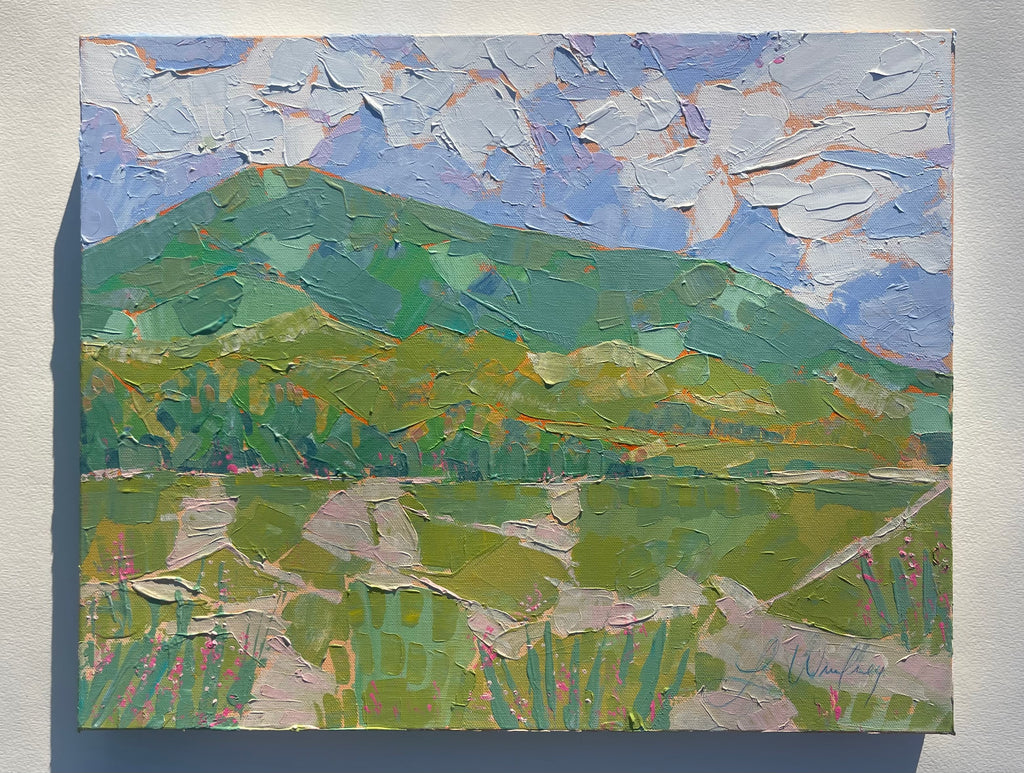 Lindsey’s paintings are an escape and journey - a time to relish the process of creativity: the brush strokes, the layers, the juxtaposition of colors. She works primarily with acrylic paints for their intensity of color and the ability to layer and create textures with various acrylic mediums and gels. A native of Lynchburg, Virginia, Lindsey’s landscapes generally focus on special places that she has known all her life, including fields at the foot of the Blue Ridge Mountains and the pristine beauty of the Cowpasture River. Working from onsite sketches and photographs, she mixes observations with her own personal memories and feelings of how she perceives a place. In addition to being an artist, Lindsey is a full-time art educator, wife, and mother of two young children.