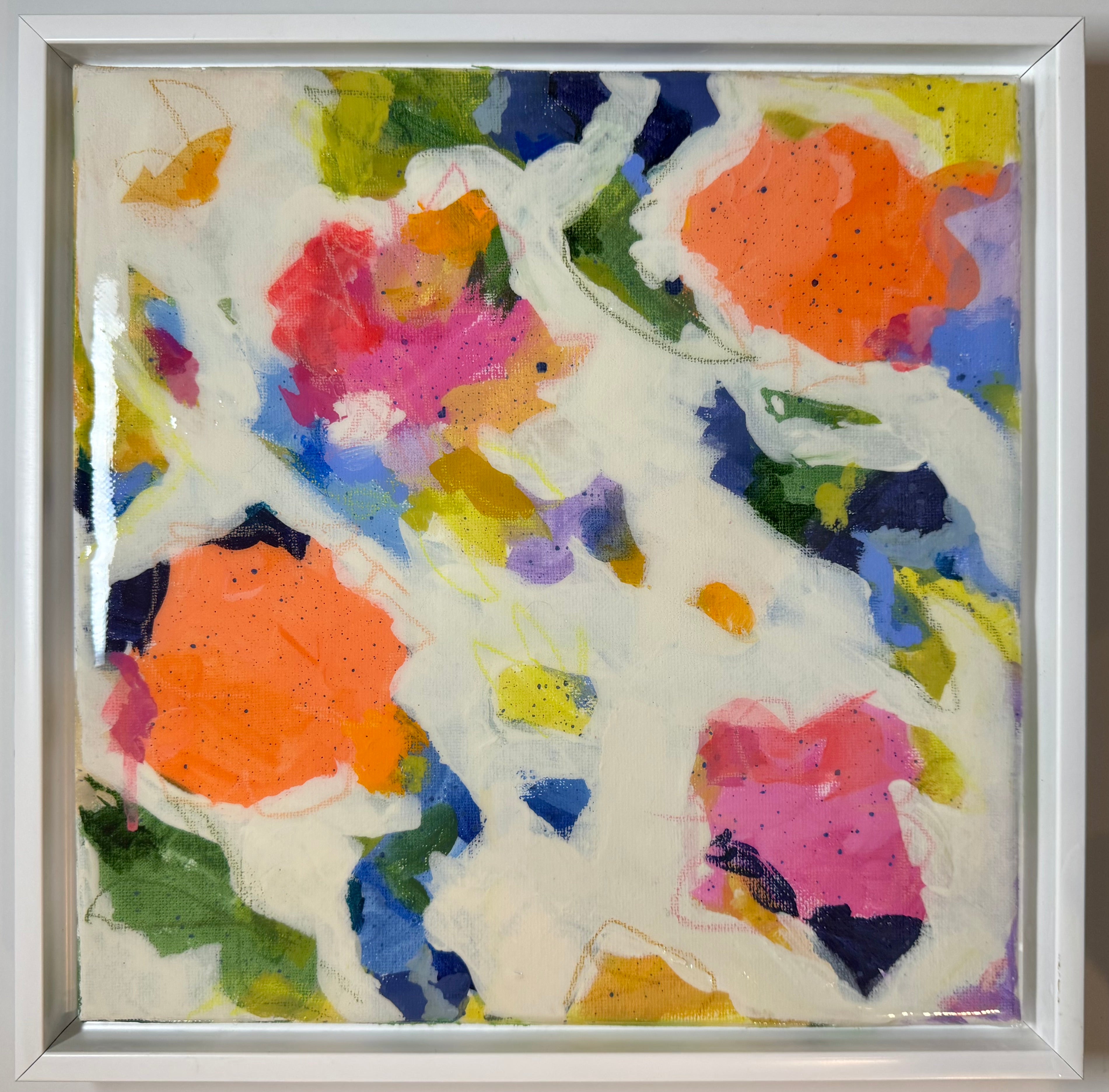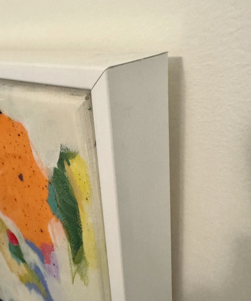 acrylic and mixed media canvas, in white floater frame