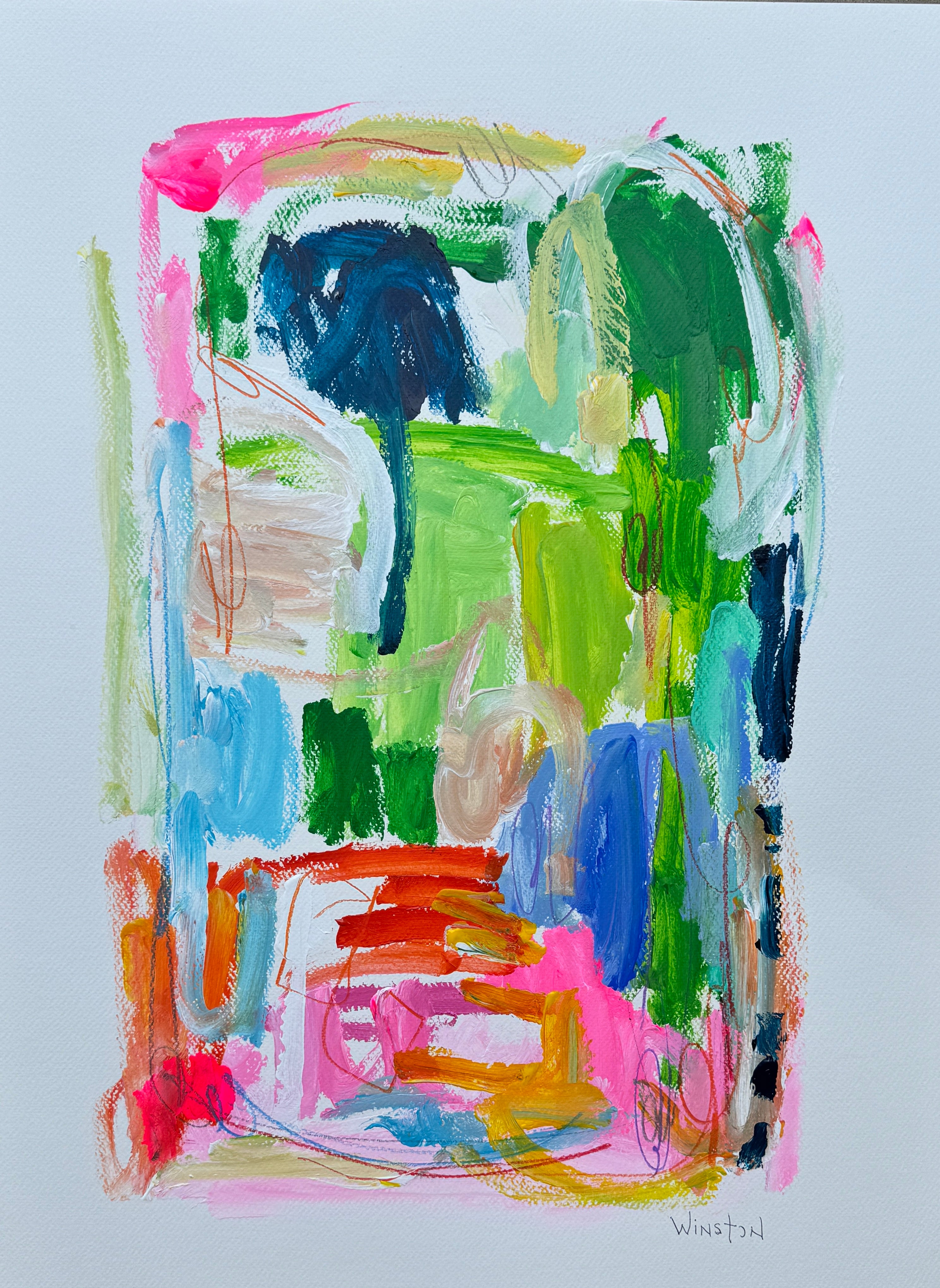 Winston Wiant is originally from Amelia Island, Florida, and full of southern charm. She brings her whimsical and witty delight to each and every painting. Having painted since childhood, she received a Bachelor of Arts degree in Studio Art at Brenau University and has been pursuing her love of art ever since. Her paintings are full of texture, using the palette knife and free brushstrokes to layer the paint, creating one energetic piece after another. She lives in Athens, GA, with her husband and two daughters and paints in her home studio. “Art to me is a form of self-expression. The way I feel that day reflects in my work. My love of bold color and texture is both distinctive and captivating.”