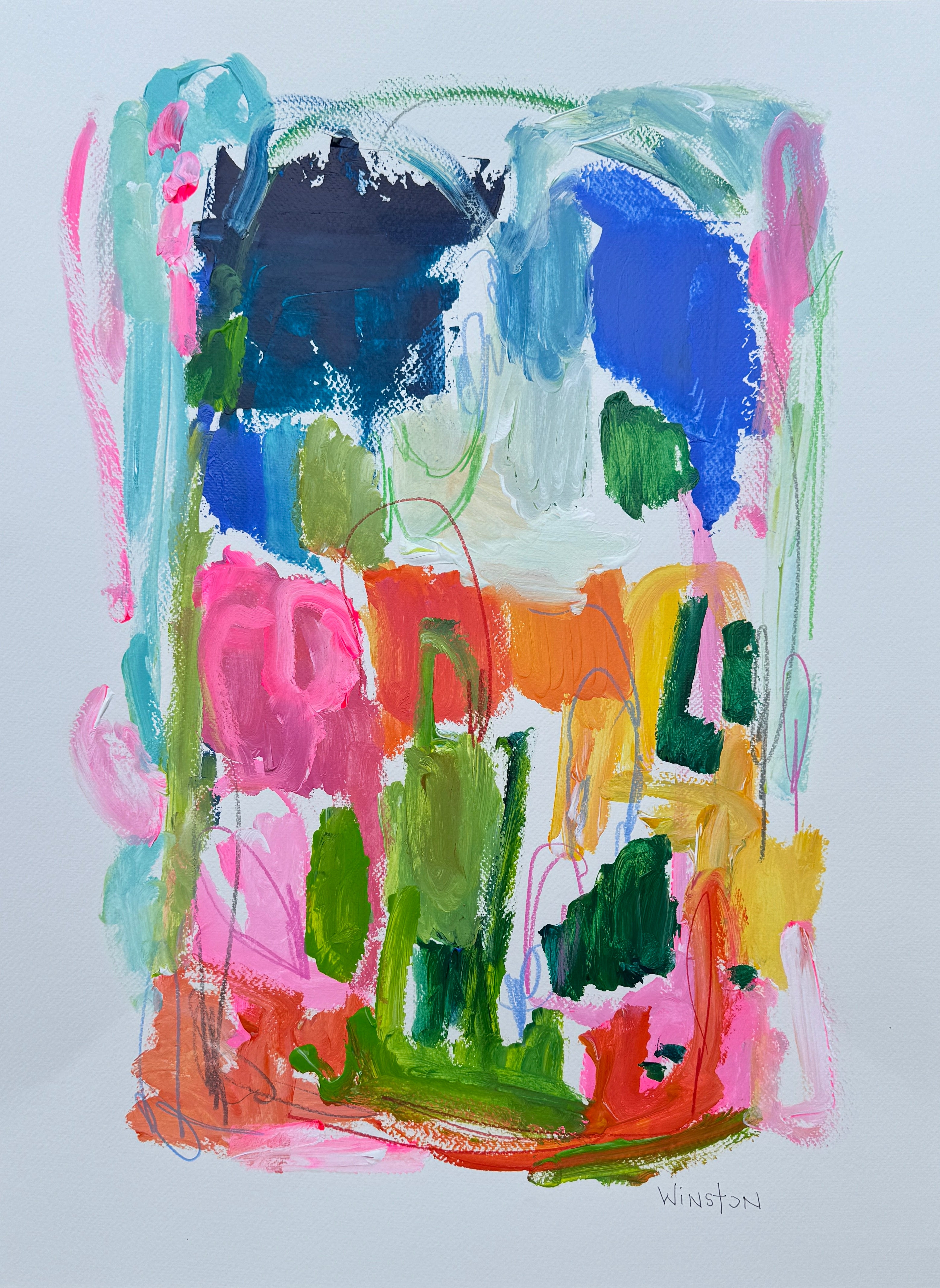 Winston Wiant is originally from Amelia Island, Florida, and full of southern charm. She brings her whimsical and witty delight to each and every painting. Having painted since childhood, she received a Bachelor of Arts degree in Studio Art at Brenau University and has been pursuing her love of art ever since. Her paintings are full of texture, using the palette knife and free brushstrokes to layer the paint, creating one energetic piece after another. She lives in Athens, GA, with her husband and two daughters and paints in her home studio. “Art to me is a form of self-expression. The way I feel that day reflects in my work. My love of bold color and texture is both distinctive and captivating.”