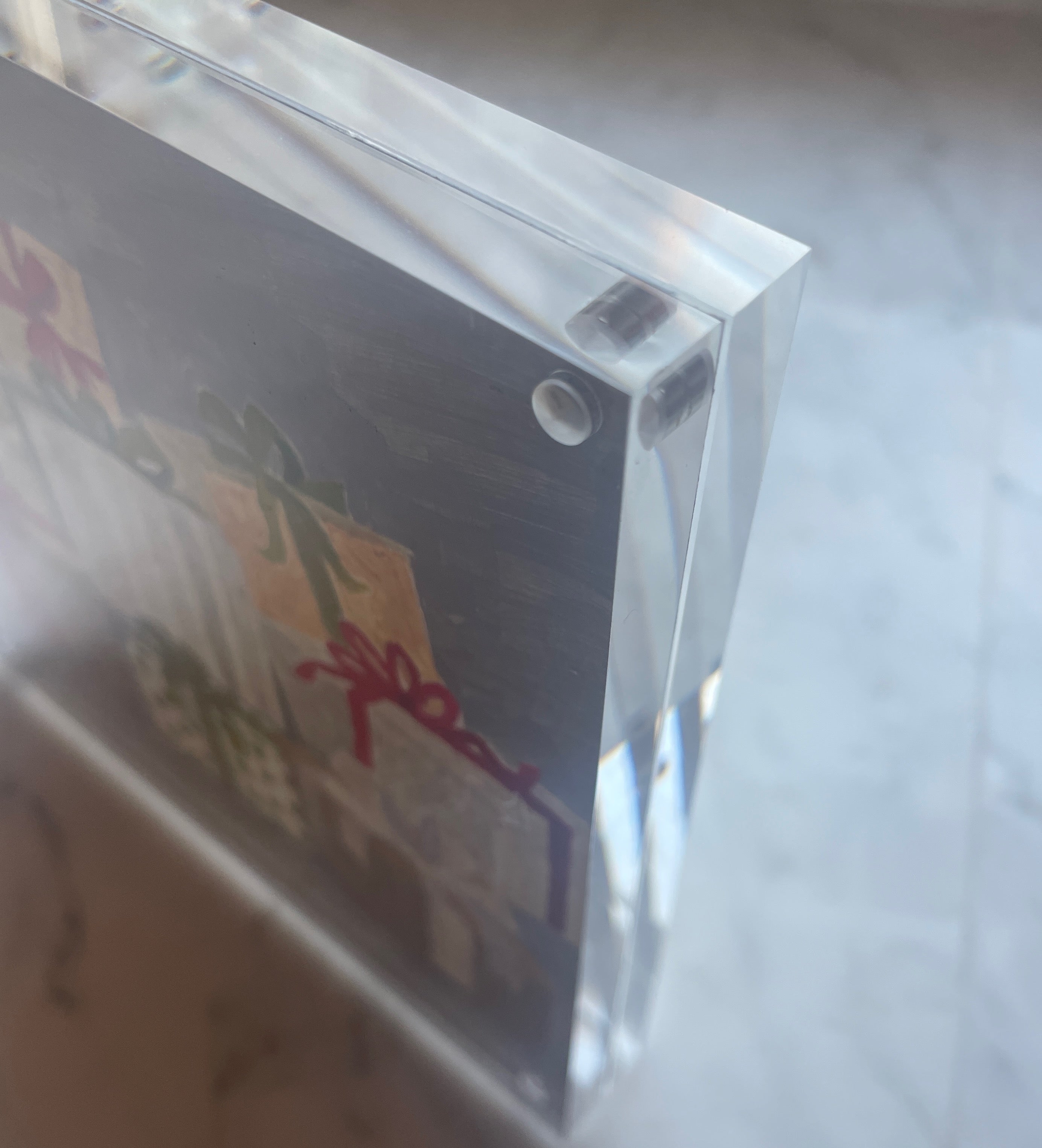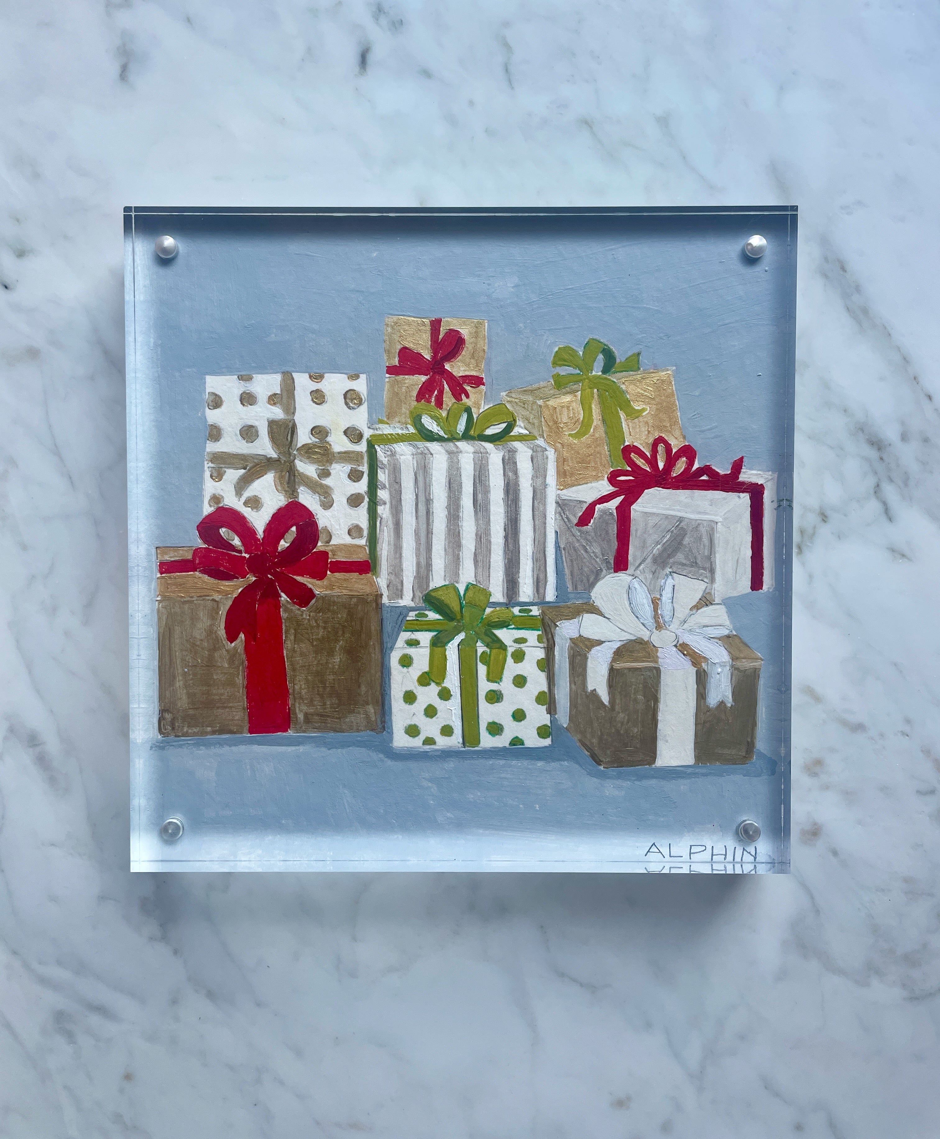 acrylic and colored pencil on heavyweight paper, in acrylic frame