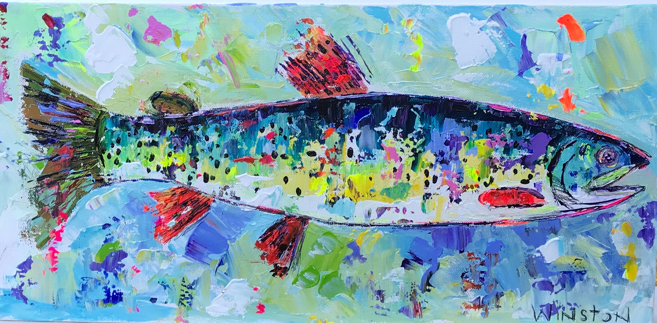 Winston Wiant is originally from Amelia Island, Florida, and full of southern charm. She brings her whimsical and witty delight to each and every painting. Having painted since childhood, she received a Bachelor of Arts degree in Studio Art at Brenau University and has been pursuing her love of art ever since. Her paintings are full of texture, using the palette knife and free brushstrokes to layer the paint, creating one energetic piece after another. She lives in Athens, GA, with her husband and two daughters and paints in her home studio. “Art to me is a form of self-expression. The way I feel that day reflects in my work. My love of bold color and texture is both distinctive and captivating.”