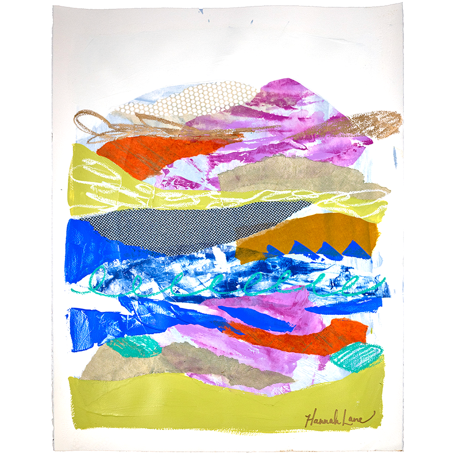 Hannah Lane is a contemporary mixed media artist celebrated for her bold use of color and dynamic, collage-like layering. A Louisiana native and graduate of the Savannah College of Art & Design, Hannah draws deep inspiration from the vibrant landscapes, diverse cultures, and heartfelt sense of family and community found in her southern roots. Her work blends pigmented Japanese papers, expressive line work, and rich washes of acrylic paint to create textured, energetic paintings. Each collection reflects her love for nature, storytelling, and community—an invitation to explore the beauty of her inner imagination. Hannah is represented by some of the top galleries in the Southeast, and her paintings are collected privately and in corporate spaces across the country. She also loves working one-on-one with collectors to create meaningful, custom pieces. After living and painting in Italy and New Orleans, Hannah now calls Nashville home, where she is part of a thriving art community. When she’s not painting in her home studio, you’ll find Hannah hiking with her boys, reading, or cooking up something seasonal and delicious! The crowd series is one of my most iconic collections, inspired by my big, beautiful Louisiana family and the joyful spirit of southern gatherings. I grew up surrounded by cousins, friends, and neighbors—many from families as large and lively as my own—where faith and family were at the heart of everything. Over the past 12 years, this series has evolved with new patterns, papers, and symbols that reflect the changing seasons of life. Each crowd painting is a kind of meditation, a reflection on the deep truth that we’re all connected. Rich with personal symbols and intuitive mark-making, these pieces push the boundaries of mixed media and invite you to see something familiar in a new way. Whether you're drawn to the vibrant energy, the quiet details, or the sense of belonging they evoke, each crowd carries its own unique aura—waiting for the right person to bring it home.
